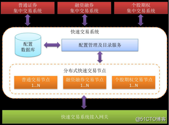 个股期权快速交易节点由配置数据库、配置管理及目录服务、交易节点三个模块组成,在系统设计上,交易节点允许分布式独立部署,每个交易节点均可自由指定服务的客户范围。